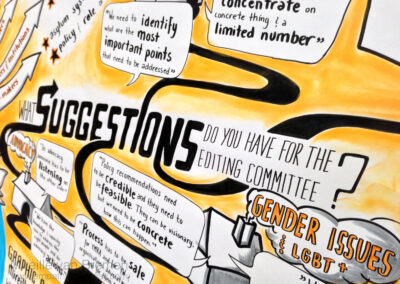 - A live Graphic Recording to capture the process, content, important words, key messages, visions, goals, action steps, etc.